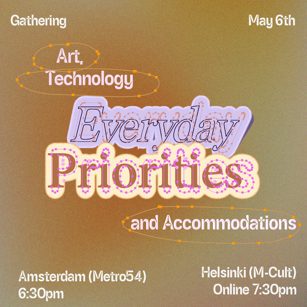 Everyday Priorities—Art, Technology and Accommodations is an invitation to collectively examine technologies that mirror racist, colonial, and ableist power structures and histories while also considering their potential to reshape conditions for everyday life. Programme is created and curated by Metro54 and M-Cult and is supported by the Finnish Cultural Institute for the Benelux.